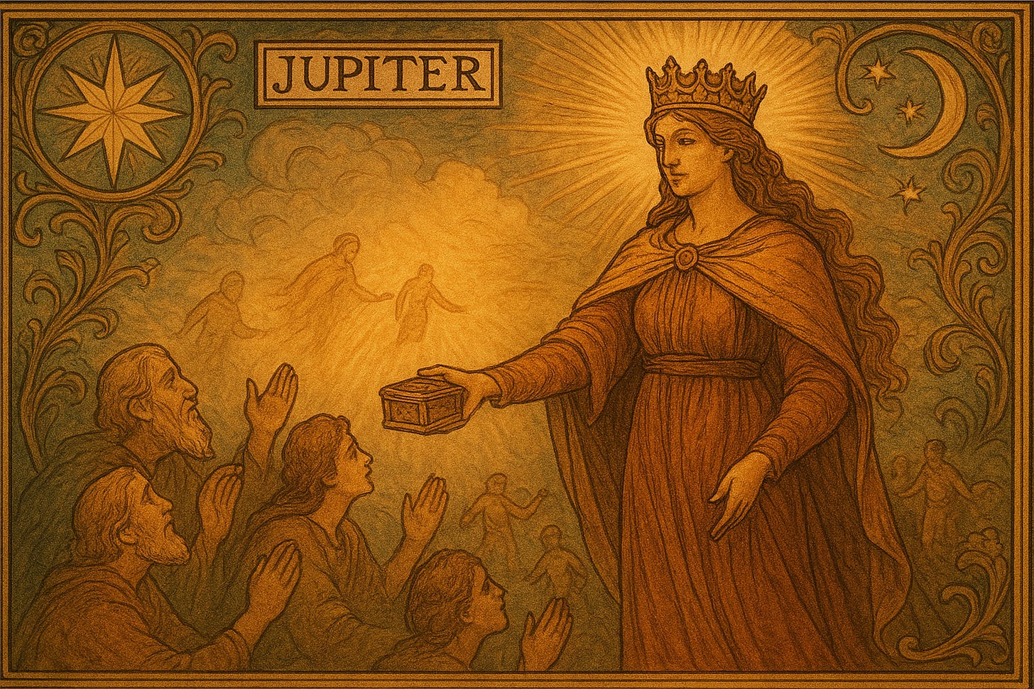 One overall story this year is that while the outer planets lock into their sextile pattern that represents the final chapter of a century-long story, Jupiter is smiling at us from its exaltation in Cancer, beaming us blessings in a way that’s hardly relevant to the bigger story, yet crucially supportive.