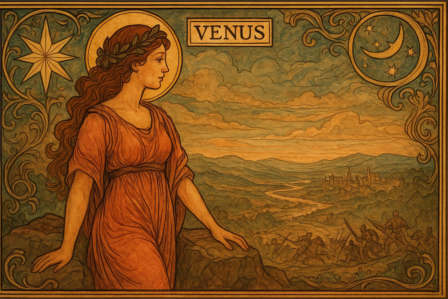 Venus enters Libra-- a sign it rules with sophisticated grace, as opposed to being stifled in Virgo-- early on 13 October. Over the course of less than two days from its ingress, it aspects Neptune by opposition, then Uranus by trine, then stationing Pluto by trine. Venus in alignment with this historic sextile pattern of outer planets prompts a challenge to our personal values brought on by the horrific crimes and oppression we see in the world. In particular, our relationship with the media (mass and social), through which we learn and cleanse our feelings about these realities, is challenged. Though Neptune is about to retrograde back into Pisces, this opposition takes place in Aries. Thus, the events in the news in the middle of October will inspire an emotional response that is indicative of how we will respond to the next decade of heroic Aries ideology.